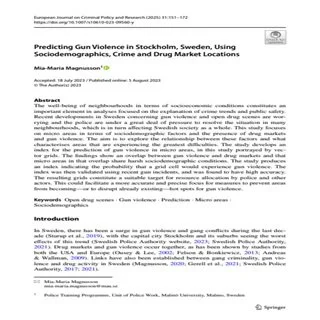 Predicting Gun Violence in Stockholm, Sweden, Using Sociodemographics, Crime and Drug Market Locations