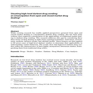 Situating High-Level Darknet Drug Vending: An Emancipation from Open and Closed Market Drug Dealing?
