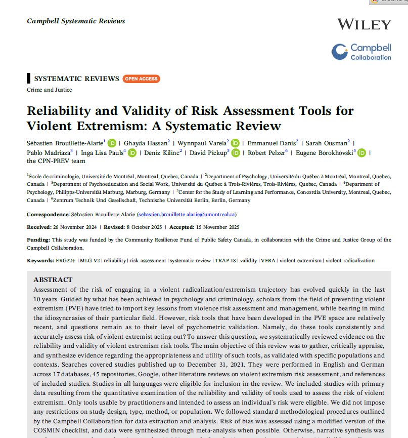 Reliability and Validity of Risk Assessment Tools for Violent Extremism: A Systematic Review