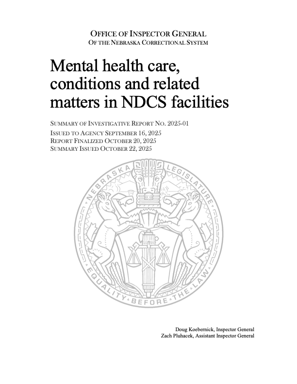 Mental Health Care, Conditions And Related Matters In NDCS Facilities SUMMARY OF INVESTIGATIVE REPORT NO. 2025-01