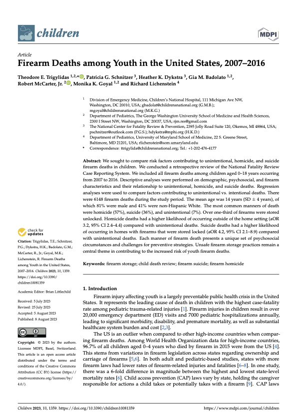By Theodore E. Trigylidas  , Patricia G. Schnitzer  , Heather K. Dykstra  , Gia M. Badolato  , Robert McCarter, Jr. , Monika K. Goyal and Richard Lichenstein