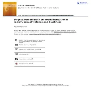 2023, Liberty Investigates (LI) released a report which reveals that Black girls are three times more likely to be subjected to the most invasive strip search with Black people making up nearly half of all Metropolitan Police (Met) strip searches of female children and teenagers. In the UK, the Met faces long-standing accusations of institutional racism. The recent report re-invokes the plight of Blackness, particularly the underage fungible subjecthood of Black girls and their plight within the institutional culture of the Met. This paper, delving critically into the LI report and the unfortunate Child Q incident, reviews the bodies of Black female children and teenagers as sites of unmitigated transgression, disciplining and violence symbolizing the ‘spirit-murder’ of the child’s psyche and its relationality to Afro- pessimism.