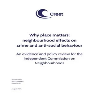 Neighbourhoods — understood here as the small, local areas people identify with in their daily lives which do not necessarily align with official administrative boundaries — play a central role in shaping people’s experiences of crime and safety. This is particularly true in relation to anti-social behaviour (ASB) and visible disorder. These issues, while often seen as less serious than violent crime, directly affect people’s day-to-day lives by shaping perceptions of safety, trust in institutions, and community cohesion. This paper makes the case for why neighbourhoods must be at the heart of crime policy — both as spaces where crime is experienced and as sites of potential solutions. The evidence is clear: the social and physical conditions of neighbourhoods are not incidental to crime — they help to generate it and shape how people respond to it. Poor lighting, unmanaged public spaces, and the erosion of social ties can all create the conditions in which ASB and crime thrive. Crucially, these neighbourhood characteristics can also be changed. Interventions that enhance the built environment, foster informal guardianship, and build local trust can have a preventative effect, reducing demand and improving outcomes cost-effectively. Over the past three decades, policy has increasingly acknowledged this link with initiatives such as Crime and Disorder Reduction Partnerships, neighbourhood policing and the Safer Streets Fund. These initiatives reflect a wider recognition that local, place-based approaches, built on strong partnerships and trust, are essential. However, the effectiveness of such approaches has often been undermined by fiscal constraints, insufficient targeting of the most affected neighbourhoods and a lack of investment in the social connections that sustain resilient communities. The government wants to ‘take back our streets’ as one of its key missions. In its June 2025 Spending Review, the government announced a new national commitment to improving 350 deprived communities, and a £240 million investment in a Growth Mission Fund — signalling a renewed commitment to place-based approaches. It was also announced that police spending power will grow by 1.7% annually, to support the government’s mission to make streets safer, complementing a pledge made in April 2025 to ‘restore local policing’ and a commitment to placing 13,000 neighbourhood police officers and police community support officers (PCSOs) into dedicated community roles. To achieve its ambitions, the government needs to ‘think neighbourhoods’: focus on areas where harm is greatest, invest in the social foundations of safety and deliver quick, visible improvements. Neighbourhood-focused approaches are not only effective, they are efficient. With limited public finances, place-based approaches offer a strategic route to delivering high-impact, low-cost crime reduction, particularly in relation to ASB and disorder. But achieving the government’s mission to ‘take back our streets’ requires more than additional police officers. It requires investing in both places and people — building social capital and strengthening cohesion — to prioritise key issues and needs at a place-based level.Summary of key findings Crime is heavily concentrated and persistent in areas of multiple disadvantage. A small proportion of geographic areas account for a disproportionate share of crime and ASB. These areas often face persistent poverty, underinvestment, and institutional neglect, which foster conditions for crime to take root and persist. Residents in these areas report significantly greater concerns about ASB, illegal drugs and safety, and feel less connected and optimistic about their communities. Disadvantage and instability reinforce each other, weakening community control. Factors such as residential turnover can interact with disadvantage to undermine social cohesion, weakening informal social control and making communities more vulnerable to ASB and crime. The built environment shapes both risk and resilience. Urban design influences crime not only by affecting opportunities for offending but also by shaping perceptions of safety, trust and community pride, and enabling more positive use of public space, including through increased natural surveillance and by supporting informal guardianship. Social cohesion and trust can act as protective factors, particularly in areas of disadvantage. Strong social bonds, shared norms, and a collective willingness to intervene (collective efficacy) can help neighbourhoods resist crime and ASB, even in deprived areas. Crime and ASB matter to communities — they act as wider signals of neighbourhood decline. Visible signs of disorder and ineffective institutional responses erode trust and community pride, reinforcing a negative cycle of decline and inse