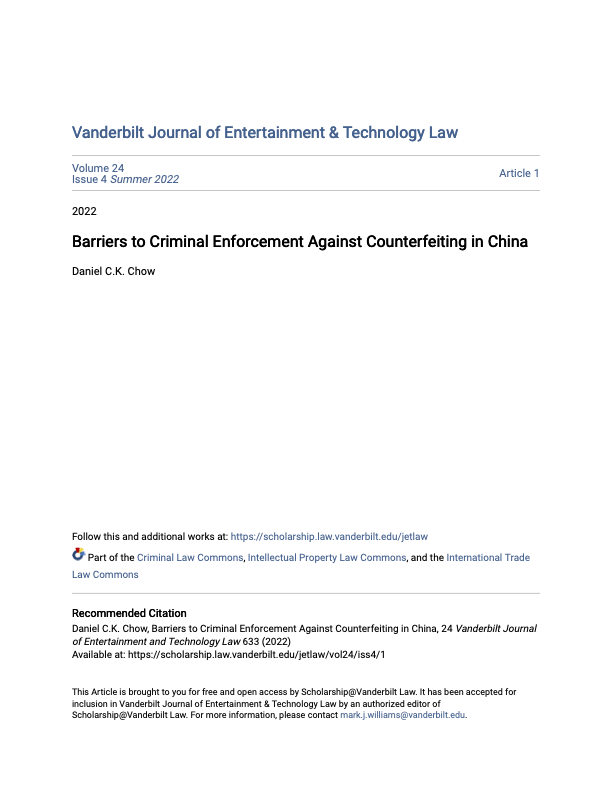 Barriers to Criminal Enforcement Against Counterfeiting in China