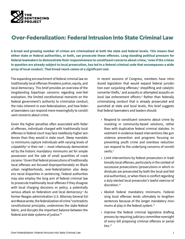 Over-Federalization: Federal Intrusion Into State Criminal Law
