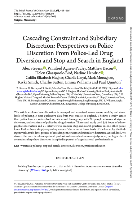 Cascading Constraint and Subsidiary Discretion: Perspectives on Police Discretion From Police-Led Drug Diversion and Stop and Search in England