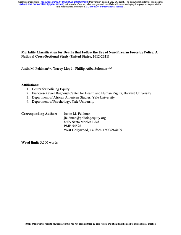 By Justin M. Feldman, Tracey Lloyd , Phillip Atiba Solomon