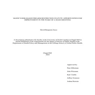 On October 25, 2023, Robert Card executed 18 civilians in mass shootings at Just-In-Time Recreation and Schemengees Bar and Grille Restaurant in Lewiston, Maine. Three months before the rampage, Card spent 14 days in a New York psychiatric hospital. His violent tendencies were known to family members, the Army Reserves, and law enforcement officials in Maine. Despite the warning signs, Card never faced a firearm prohibition. He maintained control of a high-powered Ruger SFAR rifle, which he turned on victims ranging in age from 14 to 76. The Lewiston tragedy brought renewed focus on Maine’s risk-based firearm removal statute. Phase One of this dissertation examines barriers and facilitators to use of Maine’s statute from the perspective of law enforcement officers, prosecutors, medical providers, and researchers in Maine. Phase Two of this dissertation reviews risk-based restriction statutes in three comparison states – Connecticut, Maryland, and Vermont – and examines implementation outcomes. Semi-structured interviews with stakeholders form the basis for the qualitative data in this study. The responses led to identification of key barriers and facilitators to effective implementation of risk-based firearm statutes. From these emerging themes, this dissertation offers eight recommendations to improve Maine’s risk-based firearm removal program. A plan for change is presented using an adaption of the Overseas Development Institute’s RAPID approach. The plan for change includes recommendations for legislative modification by the Maine legislature and implementation strategies to be employed by local stakeholder groups. Although no policy can eliminate the risk of gun violence, adoption of the recommendations in this dissertation will reduce the risk that the tragic events of October 25, 2023, repeat in the State of Maine.