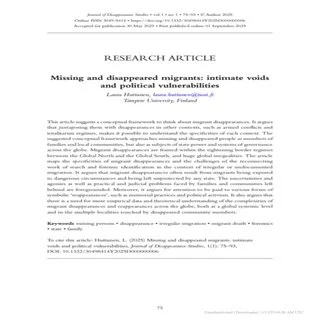 Missing and Disappeared Migrants: Intimate Voids and Political Vulnerabilities
