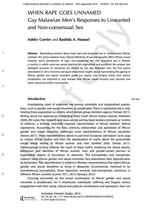 WHEN RAPE GOES UNNAMED Gay Malawian Mens Responses to Unwanted and Non-consensual Sex