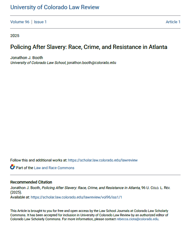 Policing after Slavery: Race, Crime, and Resistance in Atlanta