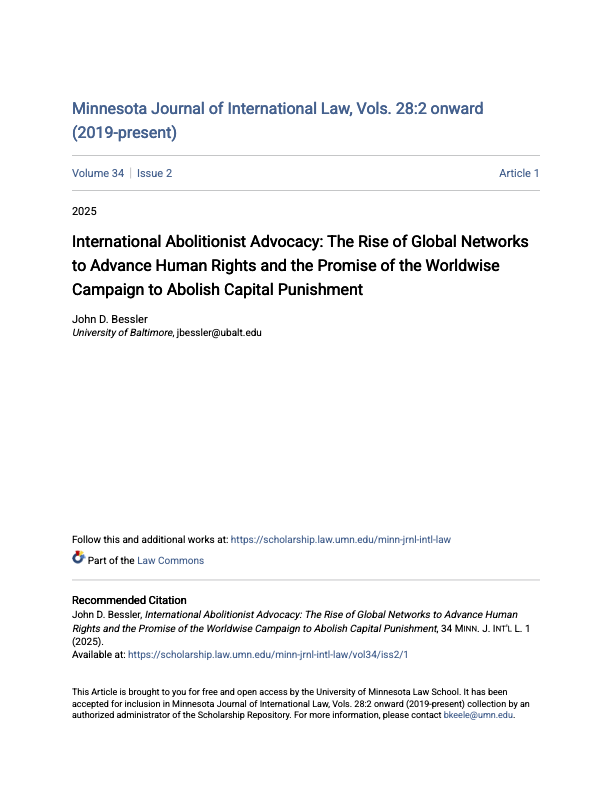 The modern international human rights movement began with the U.N. Charter and the U.N. General Assembly’s adoption of the Universal Declaration of Human Rights. Although the movement to abolish the death penalty is rooted in the Enlightenment, global advocacy to halt executions and to abolish capital punishment has accelerated exponentially in recent decades. This Article discusses the origins of global networks to advance human rights and highlights the growing international advocacy, including by nation-states and nongovernmental organizations (“NGOs”), for a worldwide moratorium on executions and to abolish capital punishment altogether. The total number of countries conducting executions in the past few decades has declined dramatically, putting retentionist states, such as China, Iran, Saudi Arabia, Iraq, North Korea, and the United States, in an increasingly isolated position in the international community. Many nations now even refuse to extradite criminal suspects without assurances that the death penalty will not be sought. With more than 90 countries having already ratified or Covenant on Civil and Political Rights (“ICCPR”), aiming at theabolition of the death penalty, and with scores of domestic and international NGOs now actively promoting abolition, the global movement to abolish capital punishment has made significant strides and holds tremendous promise, though much more work remains to be done. This Article highlights the path forward for advocates seeking the death penalty’s abolition in law—and de facto—across the globe, with a focus on international law and classifying the use of capital prosecutions, death sentences, and executions as acts of torture and clear violations of fundamental human rights. In particular, the Article discusses advocacy efforts before the United Nations, highlights the role of NGOs in leading that effort, and advocates for the recognition of a peremptory