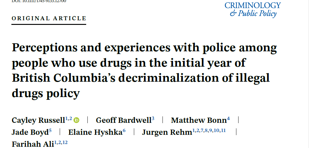 Perceptions and experiences with police among people who use drugs in the initial year of British Columbia's decriminalization of illegal drugs policy