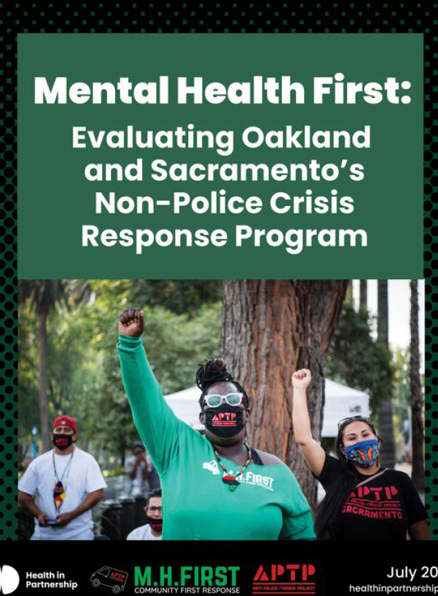 When you witness someone in crisis — a mental health emergency or other escalating situation — what are your options to intervene? For most, the only available option is to call 911. And in most places, the 911 system is directly tied to the police department, making police involvement essentially inevitable. But police are not a source of safety, especially for Black, Indigenous, disabled, and people with mental health needs. Policing in the US is a system rooted in violence and punishment, not care. Calling the police can escalate a crisis, turning calls for distress into arrest, violence, or death. Without trusted, community-led alternatives, we are left with a wrenching dilemma: stay silent and unsupportive in moments of crisis, or risk escalation, criminalization, and compounded trauma and violence. Because of this, many communities across the US are working to interrupt police violence against people with mental health needs by building up community-based, community-led, non-police crisis response programs. While more evaluations of each of these types of programs are needed, there is already a body of literature that suggests these alternative models are both more effective at meeting the needs of people in crisis and more trusted by the community. One such program is Mental Health First (MH First), a project of the Anti Police-Terror Project (APTP) launched in 2020 in Oakland and Sacramento, CA. MH First is a community-led crisis response hotline outside of the 911 and police system that community members can call when they, or someone in their community, is experiencing a crisis. The program’s guiding principles include autonomy, healing justice, abolition, intersectionality, disability justice, and harm reduction. This evaluation — conducted while the program is on a strategic planning hiatus — takes a close look at MH First’s first four years of operation to assess how the program is working, what impacts it’s had, and what is needed to grow its reach and deepen effectiveness. Using a mixed-methods process evaluation, we conducted 29 interviews with key stakeholders, and analyzed 167 survey responses from community members in Oakland and Sacramento. Our evaluation focuses on community perceptions of MH First, program strengths, and areas for growth. In particular, we examined the program’s current structure and operations, perceived impact, and potential for deepening and increased services to the Oakland and Sacramento communities Overall, interviewees and survey respondents were very positive about and appreciative of the program. Interviewees noted that the program is trusted by and rooted in the local communities it serves, an essential part of providing appropriate and accessible care to those who call. Trust is further increased by the clear, transparent values of community, autonomy, and abolition that guide MH First’s work. Importantly, MH First is building power and self-efficacy in the local and national community through their trainings, technical assistance, and volunteer recruitment — through which they have trained thousands of volunteers to staff the program. On the national level, interviewees named that MH First provides a strong model that indicates that non-police mental health crisis response programs are practical and possible. Relative to other forms of mental health crisis response, including police and co-response models, MH First is highlighted as more appropriate and more effective at meeting community needs. Our evaluation also identified areas where MH First could grow and improve to better serve the Oakland and Sacramento communities. Interviewees expressed a desire for MH First to increase reliability by expanding their hours of operation to 24/7, rather than during select hours of the week. Some also suggested that MH First transition from a volunteer-only service, to include at least some paid staff. Finally, interviewees felt that MH First should focus on preventative measures and follow-up care, not just crisis management and intervention. In order to be able to meet these areas of growth, interviewees offered suggestions for expanding the program’s reach, including through policy change, a clear narrative and communications strategy, more trainings to build community capacity, and long-term sustainable investment in the program. Two big picture questions remain for the program’s consideration: First, how can MH First avoid the co-optation of their principles and strategy by entities that dilute or stray from MH First’s values and purpose? Interviewees spoke of the inevitability of co-optation and shared strategies for how to reframe or leverage co-optation to expand the program, while still maintaining control over the narrative of the program’s practice. Second, should MH First remain an entity outside of local, county, or state government, or should it be housed under a governmental office or supported with government funds — or some combination of both? Our interviewees had strong opinions on this question, with some feeling that operating within the government and social safety net would allow MH First to be more sustainable and accessible, and others believing that moving under a government agency would cause the program to lose its current spirit and vision. Our evaluation concludes with six recommendations for MH First: 1: Continue to prioritize being deeply rooted in and led by community members in Oakland and Sacramento, particularly Black, Indigenous, Latine, and disabled community members who are most impacted by policing 2: Publicly share more stories of success, including robust qualitative and quantitative data analysis 3: Provide preventative care in order to interrupt pathways to crisis situations and follow-up care in order to ensure people have what they need following crisis 4: Expand hours of operation as much as possible to ensure the hotline is accessible and reliable 5: Increase resources a