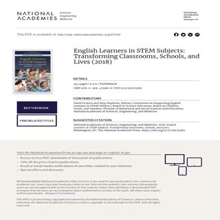The imperative that all students, including English learners (ELs), achieve high academic standards and have opportunities to participate in science, technology, engineering, and mathematics (STEM) learning has become even more urgent and complex given shifts in science and mathematics standards. As a group, these students are underrepresented in STEM fields in college and in the workforce at a time when the demand for workers and professionals in STEM fields is unmet and increasing. However, English learners bring a wealth of resources to STEM learning, including knowledge and interest in STEM-related content that is born out of their experiences in their homes and communities, home languages, variation in discourse practices, and, in some cases, experiences with schooling in other countries.