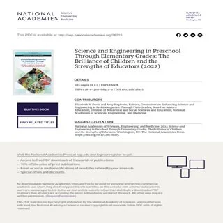 National Academies of Sciences, Engineering, and Medicine. 2022. Science and Engineering in Preschool Through Elementary Grades: The Brilliance of Children and the Strengths of Educators. Washington, DC: The National Academies Press.