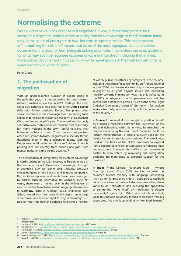 Over successive volumes of the Mixed Migration Review, a depressing pattern has emerged: a migration-related action or policy that inspires outrage or condemnation today may, in the space of just a year or two, become accepted practice. This phenomenon of “normalising the extreme” means that some of the most egregious acts and policies documented this year, far from being disturbing anomalies, may instead serve as a tideline for what may soon be regarded as unremarkable or mainstream. Bearing that in mind, the incidents documented in this section – while reprehensible in themselves – also offer a wider warning of worse to come.