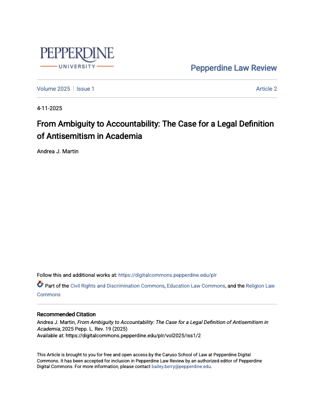 The widely adopted International Holocaust Remembrance Alliance Working Definition of Antisemitism (IHRA Definition or the Definition) provides a vital legal and policy framework to serve this purpose. It addresses antizionism by providing examples of this contemporary form of antisemitism, such as using Israel libels to deny Jewish people their right to self-determination and applying discriminatory double standards exclusively to Israel. While critics complain that these examples may chill political speech, the IHRA Definition explicitly affirms that criticism of Israel comparable to that leveled against any other country is not antisemitic, and its examples provide accurate and instructive guidance on antisemitism. This Article argues that formally adopting the IHRA Definition into university nondiscrimination policies, training programs, and enforcement mechanisms is essential to dispel the prevailing ambiguity surrounding antizionism as a contemporary form of antisemitism and to restore institutional accountability in combating campus antisemitism.
